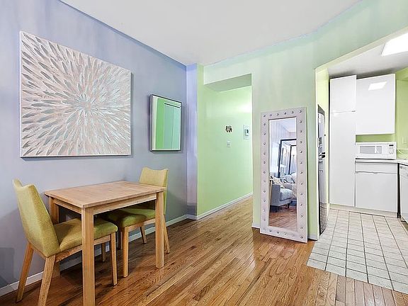 Bright studio with lovely treetop views. Fantastic opportunity to own a spacious prewar studio with its very own wood burning fireplace! The space is well proportioned with ample space for designated living, dining, and sleeping areas. There is also a separate windowed kitchen. The apartment features original hardwood floors, updated fixtures throughout, through wall AC, and a dishwasher.
