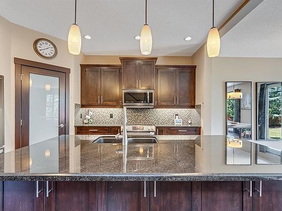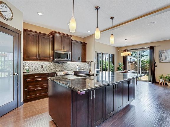 Sophisticated Elegance in Sage Hill’s Premier Community. Discover the perfect blend of luxury and tranquility in this stunning Sage Hill residence, nestled in one of Calgary’s most sought-after neighborhoods. Boasting impeccable craftsmanship and designer finishes, this home offers an elevated living experience with breathtaking mountain views, lush green spaces, and a serene ambiance. Step inside to be greeted by an open-concept layout bathed in natural light, featuring soaring 9’ ceilings, custom built-ins, and elegant granite surfaces. The gourmet kitchen is a masterpiece, showcasing rich stained maple cabinetry, top-tier stainless steel appliances, and a sprawling island—ideal for culinary enthusiasts and effortless entertaining. Upstairs, retreat to a spacious primary suite designed for relaxation, complete with a lavish 5-piece ensuite featuring dual vanities, a deep soaker tub, and a frameless glass shower adorned with exquisite tilework. Two additional well-appointed bedrooms and a grand vaulted bonus room provide ample space for family and guests. Outside, the fully landscaped yard offers a private oasis with an irrigation system for the front, side as well as the back of the home and a chic patio, perfect for al fresco dining or serene morning coffees. In 2022 the home also had upgraded insulation in the attic to increase the homes efficiency. Conveniently located near top-rated schools, Creekside Shopping Centre, premier golf courses, and major routes like Stoney Trail and Deerfoot, this home combines luxury living with unmatched accessibility. Don’t miss the opportunity to own this exceptional property—schedule your private viewing today and experience Sage Hill’s finest.