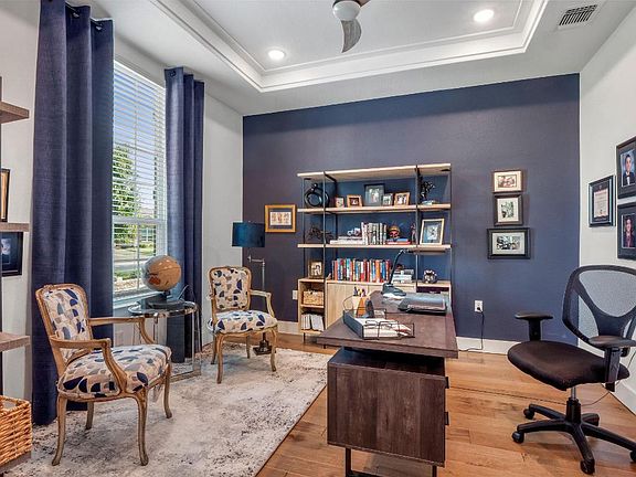 - Breakfast Bar, Tray Ceilings, Ceiling Fans, Crown Molding, Double Vanity, French Doors Atrium Doors, High Ceilings, Kitchen Island, Main Level Primary, Multiple Primary Suites, No Interior Steps, Open Floorplan, Pantry, Quartz Counters, Stone Counters, Recessed Lighting, Vaulted Ceilings, Walk In Closets