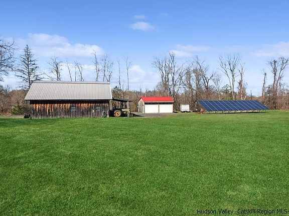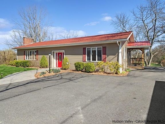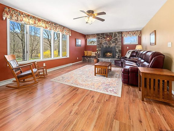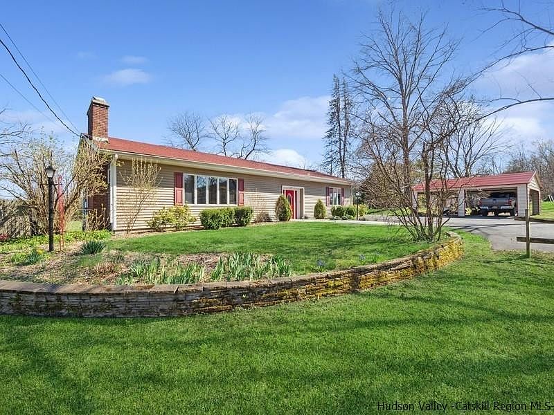 Peaceful, private and just minutes to the center of Saugerties. This 1975 custom-built ranch home is meticulously maintained and lovingly cared for. The expansive 9 acre property is a gracious natural setting for the house, the functional horse barn and the garage/workshop. This home offers the potential for easy, one-level living with a spacious first floor layout that includes a primary bedroom with en suite bathroom, guest bedroom and main floor laundry room. The large eat-in kitchen has been renovated with chefs in mind and opens into a light-filled dining area. The living space offers four seasons of enjoyment where you can watch the leaves change through the oversized windows. It is the perfect spot for curling up with a good book in front of the dramatic gas fireplace or hosting friends for game night. The walk-out basement is fully and thoughtfully finished with an additional bedroom and flexible common space with lots of light and two exterior entries. Closets and storage abound throughout. Significant investment into energy efficiency over the years reward the owners with super-low utility costs and many years they receive a credit for electric sold to Central Hudson! When you finally make it outside, you will be delighted with an expansive back deck perfect for entertaining or enjoying open skies and starry nights from the hot tub. The property is captivating year-round with a wide-open field and a meandering stream at the rear of the property. Multiple additional structures enhance the property, including a two-car carport (2013), a two-car garage-turned-workshop with electric and its own wood-burning stove (2015) and a horse barn in excellent condition with thoughtfully appointed tack-room (1998). A rural setting yet with easy access to Kingston and Woodstock, and only a stones throw from HITS and village of Saugerties. Well suited for full-time living or a lovely weekend getaway; ideal for nature lovers and homebodies alike! Constant love, attention and care make this home a well-kept jewel.