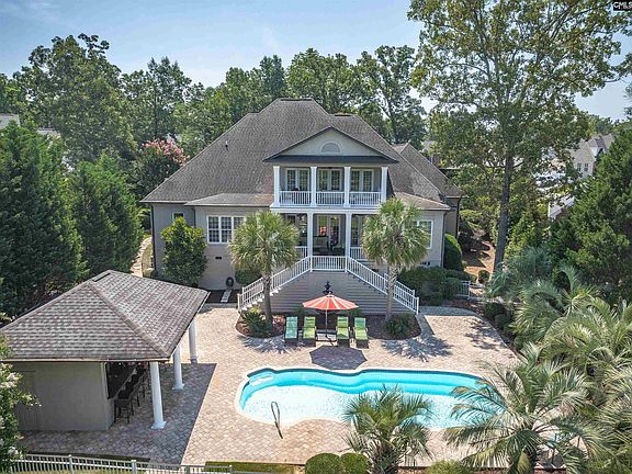 Lying within the 700 miles of shoreline on Lake Murray sits a distinguished, well appointed-luxury lake home in Forty Love; an exclusive Lake Murray neighborhood. This exquisite- custom built, all brick estate is situated on a prestigious double lot featuring .90 acres and 131 ft of water frontage. This beauty hosts a dramatic entrance with overflow parking spaces, extended 3-car garage and mature-private landscaping. Step inside the all inspiring grand foyer with marble flooring and floor to ceiling windows. Host family and lake friends from the massive chef's kitchen with exotic granite, abundant storage, stainless steel appliances, large pantry, wrap-around eat-in counters and an elegant wet-bar. Owners will enjoy a private suite on the main floor within its own wing.. Indulge in the elaborate owner's bath with dual his/her closets, dual granite vanities, large custom-tiled walk-in shower and tranquil soaking jacuzzi. Wind down evenings gazing at gorgeous water views and backyard oasis from your private owners terrace. Invite guests or family members to extend their stay from one of the 3 private en-suites on the second floor. Each guest room hosts high ceilings, walk-in closets, detailed builtins and private bathrooms. The 5th bedroom is enormous and currently doubles as a private In-home Gym! This would also make for an exciting billiards or theater room... The possibilities are endless. Continue entertainment hours outdoors from the pool oasis & private cabana/pool house (w/ priv bathroom). This sanctuary and tranquil setting gazes out to beautiful Lake views; while leading to the dock with year round deep water and mighty boat lift. This prestigious lake community is a one and only with private tennis courts/pickle-ball courts, playground, picnic area, community gathering / event space with brand new bathrooms, dry boat storage, community ramp & located in those award winning Chapin schools. Disclaimer: CMLS has not reviewed and, therefore, does not endorse vendors who may appear in listings.