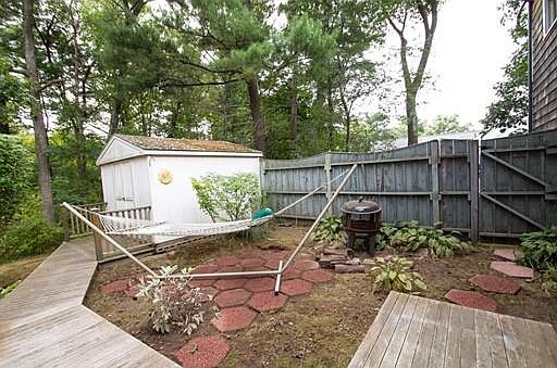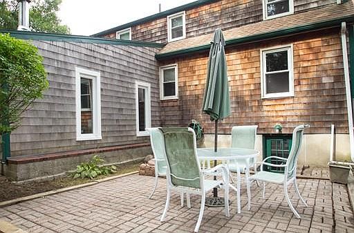 Expanded CAPE with large FARMERS PORCH for relaxing enjoyment! This home offers open floor plan with 1st floor family room with cathedral beamed ceiling, fan light PLUS private master bedroom with full bath or can be used as a bonus rec room, au pair or guest suite. Additional 3 bedrooms & ceramic tile main floor bath with updates and new updated 2nd floor bath. Hardwood floors in 3 bedrooms, living room, kitchen/dining area and main stairs. Living room with hardwood floor and brick fireplace. Large kitchen/dining area with added center island, granite counter tops and lots of cabinets. Newer energy efficient windows throughout. Lower level has playroom and lots of storage! Private treed yard includes patio area plus a separate private courtyard for hammock or table PLUS 2 sheds.TWO car garage. Walk to Fox Hill School, shopping and bus line. Easy access to highways. This home has lots to offer with this expanded floor plan!