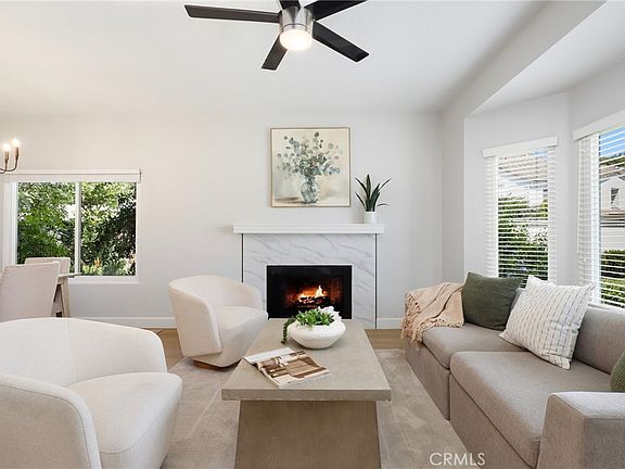 Welcome to this beautifully upgraded end-unit townhouse in the highly sought-after neighborhood of Woodbridge. Spanning 1,406 square feet, with 3 bedrooms and 2.5 baths, this light-filled, two-story residence is ideally located at a quiet cul-de-sac, boasting a rare, extra-large side yard adorned with lush green foliage and fruit trees. Step inside to discover a spacious living room accented by a cozy fireplace, abundant natural light, and new fresh designer paint throughout. Downstairs features newly upgraded Luxury Vinyl floors that complement the inviting kitchen and den area, complete with new quartz countertops, new tile back splash, white shaker-style cabinets, stainless steel appliances, and recessed lighting and eat at island. Upstairs, you'll find upgraded bathrooms with newer floors, faucets, high-end roller shower/tub door enclosures as well as new neutral carpet, new ceiling fans, and new custom-ordered mirrored closet doors. Enjoy the convenience of newer windows and patio doors with dual-pane glass, enhancing energy efficiency and tranquility. This townhouse offers more than just a home; it provides a lifestyle within the resort-like amenities of Woodbridge. Residents enjoy access to two lakes with docks, two beach lagoons, over 15 swimming pools and spas, including saltwater heated pools, along with over 20 tennis courts and several pickleball courts. The community also features numerous parks with playgrounds, volleyball courts, and scenic tree-lined streets perfect for leisurely walks. Located within the top-rated Unified Irvine School District, residents benefit from proximity to Springbrook Elementary, Lakeside Middle School, and renowned Woodbridge High School, all within walking or biking distance. Easy access to major routes such as I-405 and I-5 makes commuting a breeze, while world-class shopping, dining, beaches, UCI, and the Irvine Business Complex are just moments away. With no Mello Roos tax and one of the most central and desirable locations in Irvine, this special home offers a rare opportunity that won't last long!