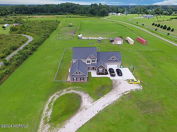 Discover your perfect modern country home! This meticulously crafted custom home is nestled on 10 sprawling acres. Stepping inside this spacious home that features an inviting open floor plan, a first-floor main bedroom offering a tranquil oasis with its own en-suite bathroom and walk-in closet. A versatile main floor flex room and a bonus room over the 2 car garage, provide endless possibilities for your lifestyle needs. The heart of the home features beautiful granite countertops, stainless appliances, an eat in kitchen area and a walk in pantry. The formal dining room allows you more space to dine for those special occasions. Upstairs you'll find a large landing which can be used as a study or an entertainment area. The 3 bedrooms upstairs all have walk-in closets and plenty of space to relax. Storage is not a problem in this home with its 3 attic floored areas. Venture outside and explore the expansive grounds with 1 dedicated riding ring and 4 separate pastures and a shelter that only an equestrian can appreciate. There's also storage in the 16 x 36 metal building in the backyard. Did you say chickens? Well, here there's also a place for them too in the nice sized chicken coop.