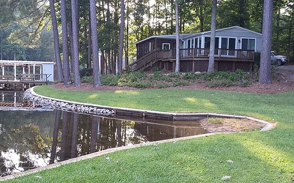 Be instantly IMPRESSED when stepping into this lake getaway as you look through a wall of glass to a FANTASTIC, BIG WATER view. This lot has 10+' DEEP WATER at the boathouse and over 200' of bulk-headed shoreline to enjoy in addition to the GENTLY SLOPED YARD with firepit and sandy area for kids! GREAT LOCATION...just minutes away from grocery, fuel, Rx, ABC, restaurants & more. The site-built addition added living space & opened it up with multiple glass doors on the lakeside that lead to a wrap-around sun deck and 300 SF screened porch. AND... this can be TURN-KEY, move-in ready & includes home WARRANTY! More: Hardiplank siding, new, lifetime windows & doors, sheetrocked LR, lakeside bedrooms, master suite, guest room, flex room for guests/hobbies, hall bath, circular drive, storage shed. Such an AFFORDABLE combo of cute house and great water! A MUST SEE!