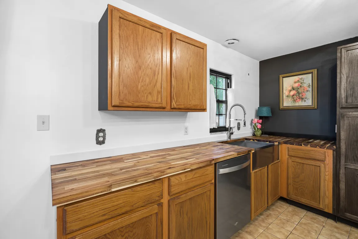 Bright inviting layoutWarm wood-burning fireplaceButcher block countertops