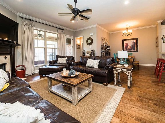 Great open floor plan with hardwood floors throughout main living areas and Master Suite! A beautiful gas log fireplace is the focal point in the living area that is adjacent to large windows. Kitchen includes solid granite countertops, large bar, gas range, built-in microwave, and large pantry. Large Master Suite has a tray ceiling, walk-in closet, jetted tub, cultured granite shower & countertops. The large utility room includes granite countertop with sink & window for natural light. Large, screened-in back porch overlooks 16th section land with fenced back yard.