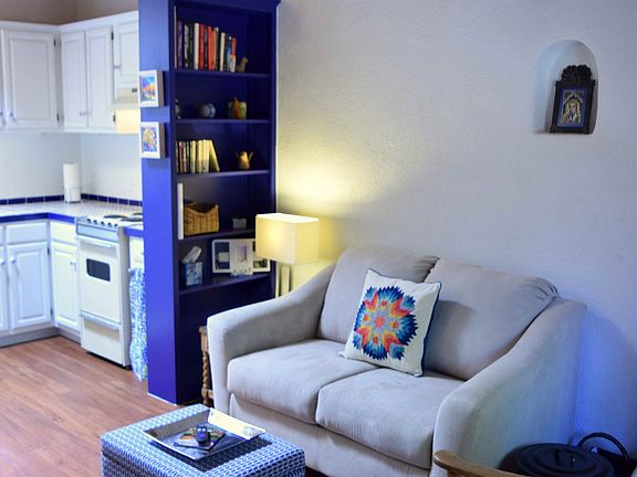 Quaint, convenient, adorable one bedroom off Kit Carson. Fully-furnished (was previously a short-term rental), so very well-appointed and appropriately furnished. Feels spacious with beautiful natural light! Walk to the plaza, shows at Kit Carson, or take the back roads to work and avoid town all together! Super accessible to local hiking spots and town- can't beat it!
