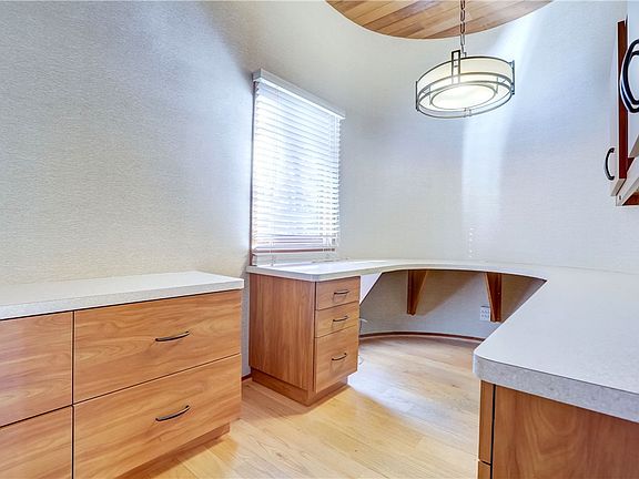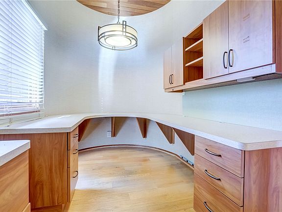- Breakfast Bar, Breakfast Area, Ceiling Fan(s), Den, Entrance Foyer, Eat-in Kitchen, Home Office, Other, See Remarks, Sliding Glass Door(s), Solid Surface Counters, Skylights, Natural Woodwork, Convertible Bedroom, Bath in Primary Bedroom, Main Level Primary, Primary Suite, Programmable Thermostat, Workshop