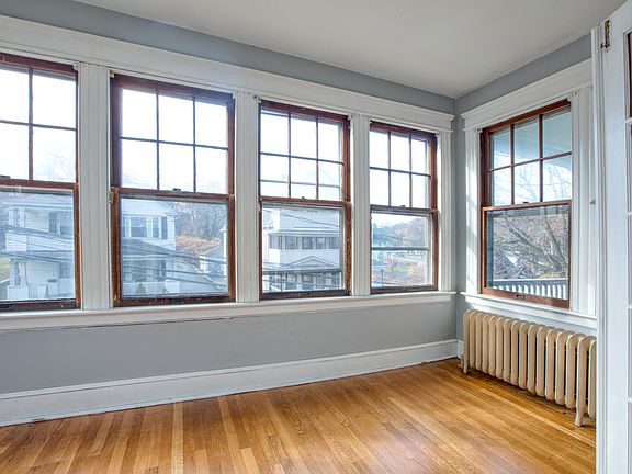 Enjoy a large, comfortable 2-bedroom, 1-bath unit featuring an eat-in kitchen with a designated dining area, a sunny sunroom, and front and back deck spaces. Both bedrooms are generously sized, and in-unit washer and dryer hook-ups add convenience.