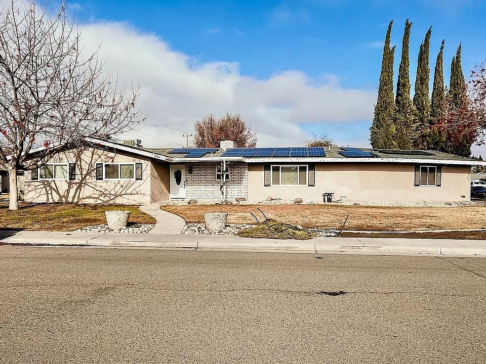 Corner Lot home! Majority of the interior is freshly painted ! Features brand new vinyl floors throughout. Large living room and family room that’s connected by a dual sided brick fireplace. The master bedroom is large, with updated closet's and a freshly painted master bathroom with an updated stone coat countertop. Guest bedroom one has updated closet as well, making for more functionality in the spaces. Has a good size backyard with a covered patio! Solar panels, with a power purchase agreement through SunRun. Washer/dryer hookup in the garage.