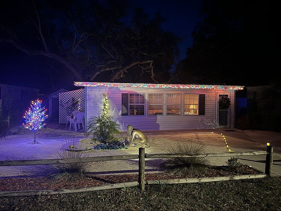 Cozy country cottage in gated, quiet naturist community with kind neighbors. and low lot rent of only $590 a month including water/sewer and trash ! ($ 20 annual HOA membership is optional); This house does not look like a mobile home. 2/1. All updates less than 5 years old: Plumbing, electric, ducts, bath, kitchen: featuring birch cabinets, butcher block counter, stove, over head built in micro, refrigerator/freezer,W/D, electric fireplace, flat screen, propane emergency generator all included.