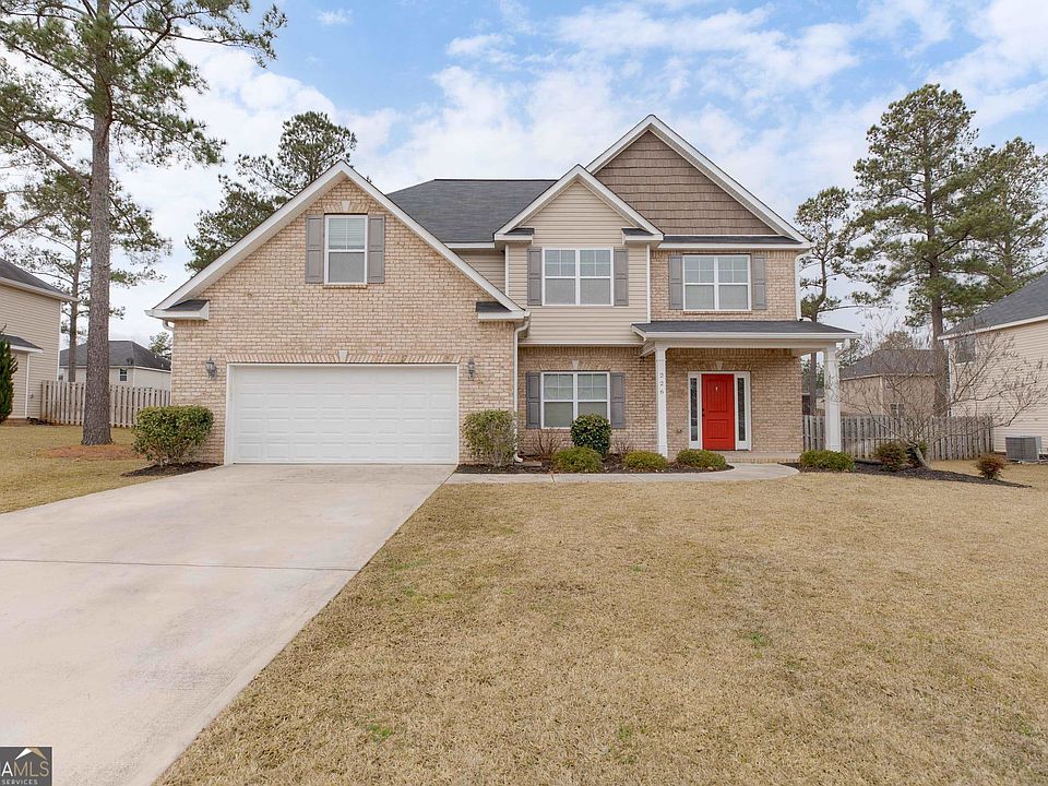 GORGEOUS, 1 OWNER HOME HOME WITH POPULAR BONAIRE ADDRESS, COUNTY TAXES ONLY, PREMIER SCHOOL ZONES & GAMEDAY BACK PORCH! This Fabulous 2 Story Home is Well Maintained & features Easy Maintenance Brick Front & Vinyl Siding Exterior with Nice Front Porch. The Interior boasts of Beautiful Engineered Hardwood Flooring throughout the Grand Foyer with Wood Staircase & Gorgeous Metal Railing, Elegant Formal Dining Room with Prairie Style Coffered Ceiling & Decorative Judges Panels, Gorgeous Kitchen with Beautiful Cabinetry, Granite Countertops, OVERSIZED PANTRY & All Stainless Steel Appliances Remain to Include the Refrigerator. POPULAR OPEN FLOOR PLAN with Kitchen Open to Breakfast Area & Large Great Room featuring Electric Fireplace. All Bedrooms are Located on the Second Level and features a HUGE PRIMARY BEDROOM & Spacious Primary Bath offering Dual Vanity, Garden Tub, Custom Tile Shower, & MASSIVE DOUBLE WALK IN CLOSETS. Your Family & Guests will Appreciate the Spacious Guest Bedrooms with Nice Closets & Access to Full Guest Bath. Enjoy Relaxing or Entertaining on the Beautiful "Game Day" Back Porch with Wood Burning Fireplace featuring Floor To Ceiling Brick Surround & Hearth & TV Hook Ups overlooking the Spacious Backyard with Privacy Fence. Other Features Include 1/2 Bath on the Main Level for Guests and Custom Built In Lockers off the Garage for Additional Storage, Spacious Laundry Room with WASHER & DRYER REMAINING Conveniently Located on the Second Level near all the Bedrooms, Beautiful Tile Flooring in the Baths & Laundry Room, CARPET ONLY IN BEDROOMS & UPSTAIRS LANDING, 2"Blinds, Gutters, Sprinkler System, 2 Car Garage & More! Some Photos Have Been Virtually Staged.