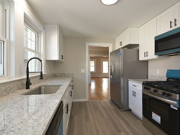 Beautifully updated 4+ bedroom home on Monument Street with a flexible layout and major recent upgrades. The first floor offers 2–3 bedrooms, refinished hardwood floors, and a fully renovated kitchen with new cabinets, countertops, appliances, flooring, and paint. The updated bathroom features a new vanity, new flooring, and fresh paint. Upstairs includes additional bedrooms with brand-new carpeting. The entire interior has been freshly painted, and the home includes a new 200-amp panel, full rewire, new lighting, new outlets, and hardwired smoke detectors. Outside features a detached 2-car garage and plenty of off-street parking. Move-in ready and conveniently located near schools, parks, shopping, and commuter routes.