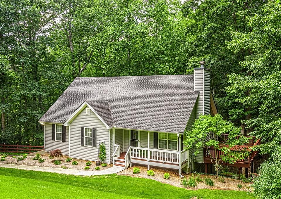 Welcome to your beautifully renovated home — this 3-bedroom, 2-bath home is ready for you to move in and enjoy. Thoughtfully updated and well cared for, the main level features a spacious primary bedroom with an en-suite bath, along with two secondary bedrooms and a fully renovated guest bathroom. Step inside to find a spacious vaulted great room filled with natural light and anchored by a cozy wood-burning fireplace—ideal for relaxing evenings. The kitchen includes quartz countertops, modern cabinetry, and updated fixtures, while both bathrooms feature stylish tilework, updated vanities, and a walk-in shower in the primary en-suite. Freshly painted throughout, every room reflects clean, modern style. Durable wood floors flow through the main living areas, adding warmth and character without the upkeep. Downstairs, the finished daylight basement offers incredible versatility—perfect as a media room, playroom, home office, or gym. You'll also find a handy mudroom, extra storage, and a two-car garage for convenience. Outside, enjoy a generous deck ideal for morning coffee, grilling, or gathering with friends. Bonus: Appliances stay (refrigerator, stove, washer, dryer), and select furniture—including a leather sectional—can be included. Conveniently located just minutes from Dawsonville, Dahlonega, UNG, shopping, parks, trails, wineries, and Hwy 400.