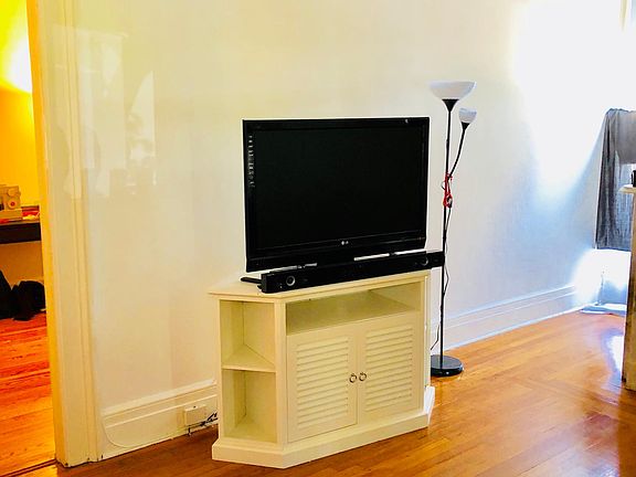 1 Month Broker Fee** ONE bedroom rental on first floor of 3-family Victorian, built circa 1890. Rocking chair porch, non-working fireplace, hardwood flrs, central air. Coin-op laundry, and one car parking. Walk to train! Tenant responsible for utilities