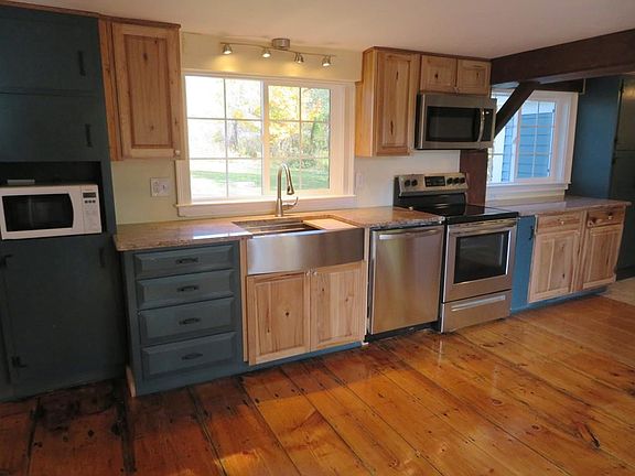 Beautifully restored Antique Cape with many originals including exceptional wide pine floors with boards up to 20" wide. Sunny Kitchen has new granite counters, hickory cabinets, farmers sink, stainless steel appliances, new windows and slider leading to the deck. Downstairs full bath has refinished original claw foot tub. Sunroom with new windows, wide pine floor, large closet, door to the deck. An excellent office or possible 1st floor bedroom. Large dining room open to kitchen, has built-in shelves. Spacious living room has an electric fireplace, fir floors, shiplap wall. All downstairs rooms have pine board wainscoting. New raised dormer spanning the back of the house with new roof, insulation, and windows. Master bedroom has carpeting, two closets and a 12' eave closet. Second bedroom has exceptional wide pine floors. New full bath with vinyl plank floor. New septic, well, driveway, oil tank, insulation, updated electric including 200 amp panel, plumbing, heating. A great find!