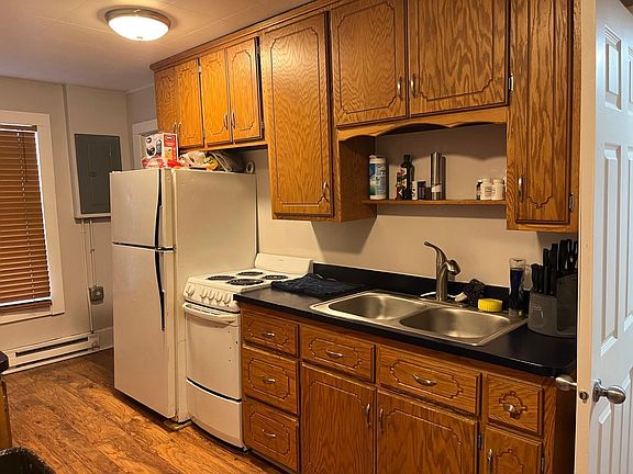 2 apartments with long term renter on the main floor and a renter upstairs. Main floor has 2 bedrooms and 1 bathroom. Upstairs has 1 bedroom and 1 bathroom. Many updates including new shingles 7 years ago, about 75% of windows replaced, new exterior doors, open front porch redone, new circuit breaker box upstairs with new wiring, new electric heat, new flooring and lighting, updated bathrooms. All refrigerators and stoves to stay with the property. Seller is selling As-Is. Renter pays all utilities except sewer and water, which seller pays. Renters need a 24 hour notice for showings.