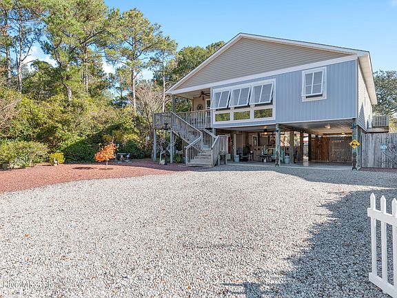 The rock front and side yards and mulch-covered landscape help keep maintenance to a minimum allowing for more time at the beach or enjoying family. A generous gravel driveway offers plenty of room for guests—and even a hidden space for your golf cart. Located just a few streets from the park makes it an easy stroll to the craft fairs, events and live music or stay home and listen from your backyard around the fire pit - Yes, it's that close!
