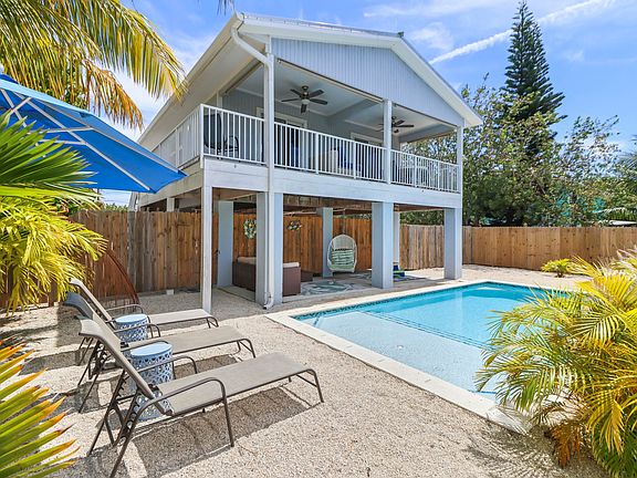 Nestled on a quiet dead-end street, this 2-bed, 2-bath stilted home offers privacy, low-maintenance living, and a relaxed Keys lifestyle. With county and state-owned land across both the canal and the front of the home, you'll enjoy lush, unobstructed views with no future development in sight. Step inside to a fully-furnished (excluding artwork), open-concept living space featuring beautiful wood beams and abundant natural light. The backyard is an entertainer's dream with a new (2022) custom concrete pool and a fully fenced yard--perfect for relaxing after a day outdoors. The plugged swimming canal offers clean, calm waters and is great for fishing right from your composite dock. A few boat ramps nearby makes it easy to get out on the water. Built for peace of mind, this home features hurricane impact windows and doors, a 5V Crimp metal roof, and exceptionally low insurance costs--flood policy is just ~$800/year! The large lot offers plenty of room for boats, RVs, and extra vehicles, plus covered parking or storage under the home. If you're looking for seclusion, serenity, and a true Florida Keys retreat, this is the perfect place to call home.
