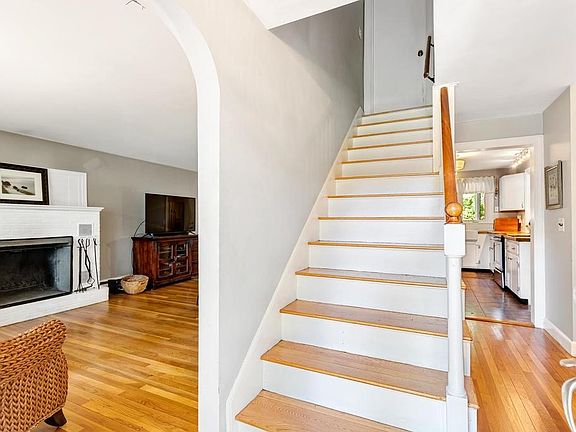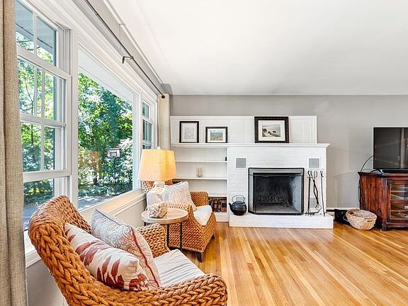 Enchanting Cape with a seaside vibe! Airy & bright this charming home is likely to captivate anyone who admires New England coastal architecture.Front to back living room has recently finished hardwood & is anchored by custom bookcases & a well enjoyed wood burning fireplace. French doors lead to the sun room which has been a relaxing retreat as well as a fun informal gathering space for friends & family. Country kitchen with butcher block counters, white cabinetry and stainless appliances. Large breakfast bar separates dining room from kitchen and provides an open feel. Fourth bedroom on 1st floor makes a perfect office or guest suite with nearby full bath. Second floor has three generously sized bedrooms including a large master. Gorgeous wide pine flooring in all three bedrooms. Additional bath rounds out second floor. Private rear patio perfect for that early morning coffee or late evening beverage! Offers, if any, reviewed Thursday 8/27 4pm!
