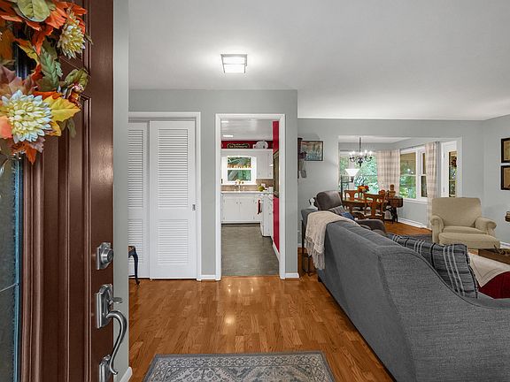 Welcome to your dream ranch home nestled in a serene and quiet neighborhood. This delightful residence offers a perfect blend of comfort and timeless elegance, featuring a cozy wood-burning fireplace in the living room, original hardwood floors throughout, a large owner sweet with a walk-in closet, and a convenient attached garage. A stunning 3 seasons room overlooks the backyard which is a true oasis, thoughtfully landscaped to provide a peaceful retreat. The family room in the basement adds extra square footage for your families needs. Upgrades in the last 5 years include new concrete driveway, hot water tank, roof, and AC.