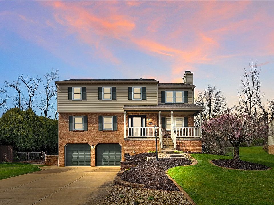 Desirable Cortina Marie Neighborhood Home! Wonderful Covered Front Porch Entry Opens to Spacious Tiled Foyer with Coat Closet and Updated 1/2 Bath on Hallway. Beautiful Kitchen with Dark Oak, Crown Topped, Kitchen Craft, 42" Cabinets w/Undermount Lighting, All Stainless Steel Appliances, Granite Countertops and Adjoining Bump Out / Bay / Eat in Area. Adjacent/Open to FamilyRm w/Roughed Wood Beamed Ceiling, Bricked Gas Fireplace, and Slider to Your Backyard Oasis, Including: Rear Deck, Beautiful Paver Patio w/Built in Sit Wall and Firepit, and Pool with Gorgeous Newer Deck + Huge Shed. Nice Size Dining & Living Rooms w/Neutral Carpet/Paint Complete the Main Level. Two Linen Closets, Updated Hall Bath, and 4 Spacious BRs on Upper Level, All with Oversized Lighted Closets & Ceiling Fans, Incl. Owner's Suite w/Full Bath, Second Vanity/Dressing Area & Walk in Closet! Finished Lower Level Offers Gameroom, Full Bath w/Shower, HUGE StorageRm, 20x23 Garage w/Side Dr & Laundry w/Util Sink & W/D!