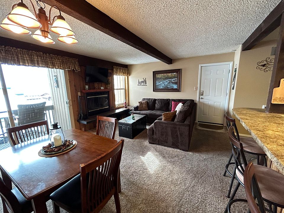 Breathtaking view! Great location! Personal garage! and did I mention the VIEW!!!! This 2 bedroom condo is located directly across from the resort. Condo features a wood burning fireplace, updated kitchen and lots of natural light. The garage guarantees you a place to park upon arrival no matter what time you arrive, or store your snowmobiles/ atv in the off seasons. Your friends/family want to tag along? Great! You can accommodate them in your second bedroom. Everyone trying to get ready at once? The vanity is located outside the bathroom with large counter space and mirror. Shower, tub and toilet are located in an enclosed area. Come see it for yourself!