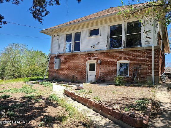 Go back in time to 1940 in historic Prescott. This aged gem is a Historic Building registered with US Dept of Interior. It has had some recent updates such as new PVC plumbing and base board heat. The original steam heat is still available with some repairs. The home is located within walking distance to everything downtown. Property zoned multi-family. Basement finished with kitchenette and 2 3/4 baths. Large open area for living room/game room. Extra storage and small bedroom. Additional building in back of property (364 sqft) once a 1 car garage (non-functional garage door) but makes great storage space with a room above for a art studio, work room. Opportunities are endless. Street parking in front and a driveway off alley in the back of yard.