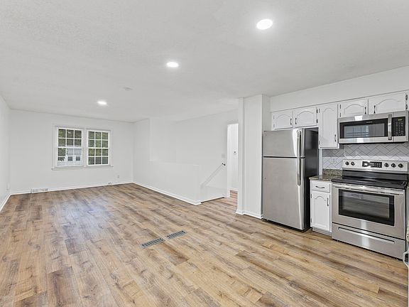 Recently renovated duplex located minutes from shopping centers, highways, and the great Olathe school district. This beautiful 3-bedroom and 2-full-bathroom home has just been freshly painted outside and inside, luxury vinyl floors throughout, newer stainless steel appliances, and updated bathrooms. It has great natural light along with new LED light fixtures. Upstairs has two bedrooms and a full bathroom, and the main level has a bedroom with its own full bathroom and a walk-in closet. The flex room on the main level can be used as an office or a kid's play area, and a one-car garage with a laundry room. The kitchen has granite countertops and a tile backsplash that opens to the living room and dining area, perfect for gathering with family and friends. Spacious backyard that backs into trees. We just completed the renovations, so the property is ready for immediate move-in.