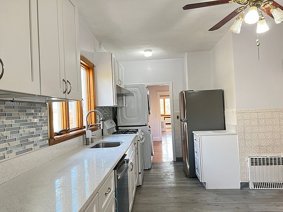 Newly renovated, southeast facing condo at Somerville MA, only 0.3 mile (6 minutes' walk) away from Gilman Square. This sun-drenched, bright, top unit with 1390 sq.ft spacious 2 bedrooms plus study room (can be used as 3rd bedroom) in two-family structure features hardwood floor throughout; new freshly painted throughout; remodeled kitchen with new cabinets /new stainless steel appliances/vented-out exhausted fan/man-made granite countertop; new bathroom vanities; spacious living room and dining room; and even new outlets/luxury window blinders/door knobs/locks. Three enclosed porches provide extra wonderful home office and one off-street parking and shared use of front and back porch. Spacious walk-up attic for storage. Easily walk to public transic and excellent great neighbourhood. Easy commute to Cambridge (1.8 miles away from Harvard University and 2.2 miles from MIT) and Boston. Laundry in unit-use. Oil heating. Attention! Newly renovated! Please see 3D tour below. Location! Location!! Won't miss it! Hurry up! Available now. Renters are responsible for all utilities except cold water. Renters are responsible for snow remover. First month and last month rent plus 2000$ security deposit are required at lease signing. No smokers are allowed. 12 month lease is preferred.