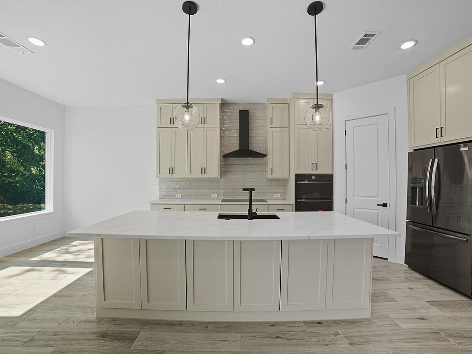 Dedicated home officeElegant wood-look tile flooringQuartz countertopsBeautiful natural viewsExpansive his-and-hers walk-in closetsOpen-concept kitchenSerene greenbelt lot