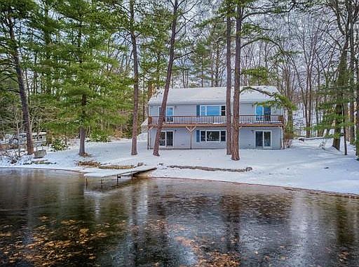 Hurry .... Rare offering! This year round Lake Shirley WATERFRONT home offers superb privacy. 110' of shoreline w/dock for quality living and enjoyment on recreational Lake Shirley. Enjoy swimming, boating, kayaking & water skiing including other lake activities right at home.The large deck spans the back of the property with ease of access through the living room slider and master bedroom slider. The main level has a gas fireplace in the open living room area and the lower level great room has the warmth of a wood stove. The home has central vac & is generator ready. The open floor plan is accented by the natural lighting throughout w/exceptional views of the lake and the natural beauty that surrounds the property. This home offers great closet/storage space with a 4 bedroom septic design and oversized 2 car detached garage. It's an exceptional location on the lake well located in what is known as "bass cove". You will soon understand what it means to live on Sunset Lane.