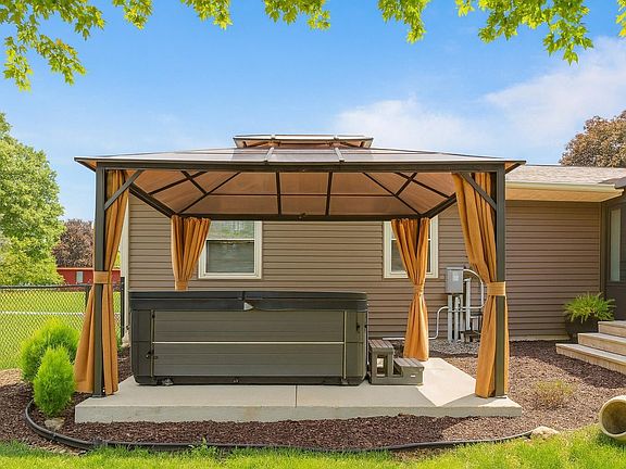 Priced to sell this inviting 4-bedroom, 2-bath ranch home in the heart of Hudson! Providing comfort, convenience, and features energy-saving solar panels (owned) and a cozy gas fireplace. The main floor laundry makes everyday chores easy. The 4 season room offers year-round enjoyment with lots of natural light. Downstairs has a large recreation or family room, plus a master bedroom with walk-in closet and bathroom. The backyard is designed for fun and relaxation. Enjoy the gazebo with hot tub, a brick fire pit, and a childrens playhouse with electricity. Also, a shed for extra storage, a fenced-in backyard, and an XL one-stall attached garage with an extended driveway. With its prime location near schools, parks, and community amenities, this home is ready for you to make it your own. Do not miss your chance, schedule a showing today!