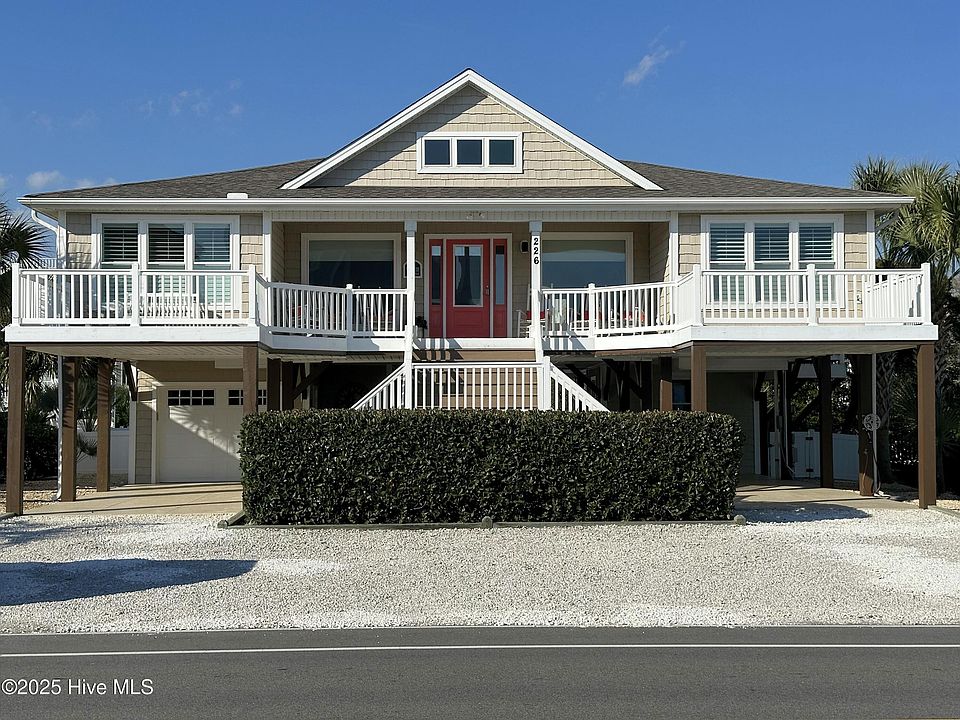 Completely renovated and redesigned in 2018 by Charles Fox, of Charles Fox Homes, this second-row beauty boasts an impressive 6 bedrooms and 4 baths, making it an ideal residence or vacation home for larger families or gatherings. Upon arrival, the stunning exterior immediately captures attention, framed by a spacious oversized front porch where beautiful ocean views can be enjoyed. The home is complemented by lush landscaping, enhancing the curb appeal. Step inside to open concept living, adorned with large windows allowing natural light and ocean views to flood the interior. The open layout facilitates easy navigation between the living, dining, and kitchen areas, making it ideal for both entertaining and daily living. The interior is designed for both aesthetic appeal and functionality, featuring long plank-style LVP flooring that flows seamlessly throughout the common areas & bedrooms. Two spacious primary bedrooms offer the luxury of private ensuite baths, while an additional four bedrooms, serviced by two jack & jill baths, ensure comfort and convenience for all guests. Each bedroom boast plantation shutters, and each bathroom features elegant Calcutta Marble tile, full glass shower panels, and contemporary stone counters, creating a sophisticated atmosphere. The heart of this home is undoubtedly the expansive kitchen & dining area, equipped with a striking 12ft island bar that provides ample space for meal preparation & casual dining. High-end stainless-steel appliances, soft-close cabinetry and eye-catching stone countertops make this kitchen a dream for any culinary enthusiast. Meticulously maintained and furnished with top-of-the-line furniture and decor including custom built-in full over queen bunks in two of the six bedrooms, this property feels and shows like a model home! The property sits on an oversized 75-foot lot, providing a generous outdoor living space perfect for year-round enjoyment. The outdoor area features a lighted saltwater pool, an outdoor shower, and a unique epoxy-coated concrete space underneath the home, ideal for relaxation or entertainment.