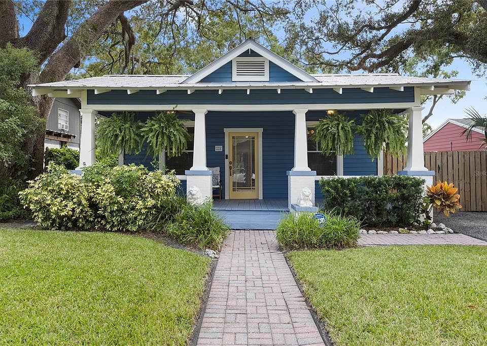Beautifully Renovated 1926 Seminole Heights Bungalow with Versatile Detached Flex Space! Step into timeless charm with this thoughtfully updated 2-bedroom, 1-bathroom bungalow, complete with a loft and a detached bonus space that invites endless possibilities. Whether you envision a peaceful home office, a creative hideaway, a private guest haven, or a tranquil yoga room, this fully refinished, climate-controlled structure—adds flexibility and function to suit your lifestyle. Inside the main home, original heart-of-pine wood floors have been lovingly restored, radiating warmth and character throughout. The living room boasts a wood-burning fireplace, built-in bookcases, and a cozy window seat—a perfect blend of historic charm and contemporary ease. The inviting kitchen features KraftMaid maple cabinetry, tile countertops, a side-by-side refrigerator, brand-new gas range, and a stacked washer and dryer—both practical and stylish. A charming box window creates an ideal nook for morning coffee or casual dining. Modern comforts include a new HVAC system (2023) and a tankless gas water heater (2024), ensuring year-round comfort and efficiency. The front bedroom offers dual closets and another delightful window seat with hidden storage. The second bedroom, tucked at the rear of the home, impresses with vaulted ceilings, recessed lighting, a unique sleeping loft, and French doors that open to a spacious backyard deck—ideal for entertaining under the stars. Additional upgrades include Low-E dual-pane windows, updated electrical, plumbing, and sewer systems, a durable metal roof, and a wood privacy fence. The covered front porch is pure bungalow bliss with ceiling fans, a porch swing, and a welcoming brick paver walkway. Enjoy a lush, fully fenced yard with well-fed irrigation, ample parking on the long asphalt driveway, and a location that truly shines—just steps from Epps Park and the Hillsborough River, and minutes to downtown Tampa, local dining, shopping, and the airport. Don’t miss this one-of-a-kind opportunity in the heart of the Seminole Heights Overlay District—where charm, function, and flexibility meet.