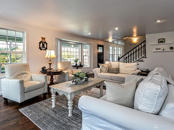 An iron entry gate, a winding blacktop driveway, a stable in the center of a green pasture with a white-railed fence, beautifully landscaped gardens featuring a delightful tunneled grape arbor walkway, several outdoor patios, a play area to include a life-sized dollhouse, a miniature "Red Barn" potting shed, a glorious Mt Baker & Twin Sister view & finally a completely remodeled Country Home with designer finishes throughout along with a huge wraparound deck & veranda is all waiting to be yours.