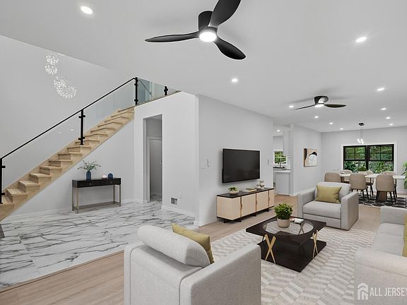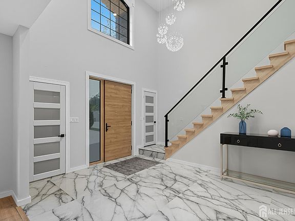New Construction, Luxury, Space & Smart Living All in One! Experience modern elegance in this stunning 6-bedroom, 6-bathroom dream home packed with high-end finishes and cutting-edge technology. Step through a grand 65'' x 8' custom front door into a space that blends sophistication with functionality. The foyer makes a statement with porcelain flooring from Italy, a floating staircase featuring a frameless glass railing with a sleek metal handrail, and a stunning chandelier-an architectural and design centerpiece that sets the tone for the home's modern luxury. Enjoy natural light streaming through Andersen windows and patio doors, and entertain effortlessly on the expansive 12' x 36' deck. The gourmet kitchen boasts quartz countertops, Cafe and Thor luxury appliances, sleek modern cabinets, and a spacious walk-in pantry. Smart fixtures include LED lighting, two smart kitchen sinks, and modern toilets-every detail thoughtfully designed. The luxurious primary suite features a soaring 12' ceiling, dual walk-in closets, and a spa-like en-suite bathroom with a jacuzzi accented with quartz. 9' ceilings throughout enhance the open feel. Additional highlights include a full second-floor laundry room and solid doors in all bedrooms and bathrooms. Car enthusiasts will love the Half-circle driveway, 4-car garage configuration (2 attached, 2 detached) with automatic doors, R-18 insulation, and pre-wiring for an electric vehicle charger. The basement with 9-foot ceilings is prepped for a wet bar, offering prime entertainment potential. This tech-forward home is wired for WiFi and security, includes 200-amp service, two-zoned heating and cooling, two tankless water heaters, and ample storage on the third floor. Outside, enjoy paver pathways, a spacious yard, and a patio, in a location that's hard to beat-just 3 minutes to the NJ Turnpike and major highways, with shopping and entertainment nearby. Style. Space. Smart Living. Welcome Home.