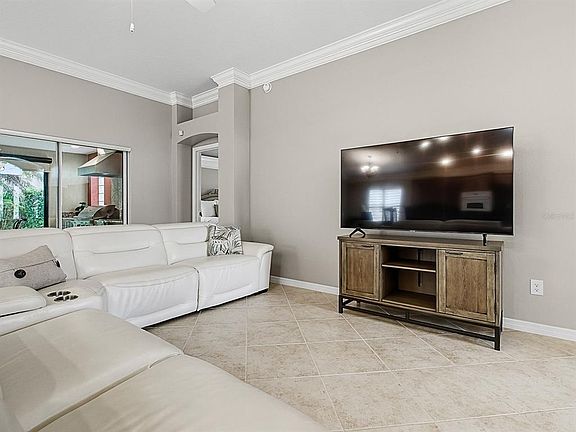 BOND PAID and TURNKEY! This stunning Designer Lily boasts a 2-Car with GOLF CART GARAGE in the Village of Tamarind Grove. From the moment you arrive, the artistic paver stone driveway and expanded patio set the tone, inviting you inside to discover more. Step inside through the decorative glass front door with sidelights into the foyer. The bright, sun-filled interior features a spacious open great room with volume ceilings, EXTENDED CROWN MOLDING, PLANTATION SHUTTERS, and tile laid on the diagonal, with cozy carpet in the bedrooms. The formal dining room has ample space to entertain guests, while the inviting breakfast nook, with a view of the lush, filtered sunlight backyard, is the perfect spot for more casual dining. A SOLAR TUBE illuminates the gourmet kitchen which is designed for both style and function. The kitchen showcases maple cabinetry with pull-outs, GRANITE countertops, tile backsplash, under-cabinet lighting, double wall ovens, and a GAS cooktop stove. A stylish breakfast bar provides even more seating with convenient foot ledge for comfort. The owner’s retreat offers elegance and comfort with a tray ceiling with rope lighting, and a large walk-in closet. The primary bathroom is complete with dual sinks, a separate toilet room, and a luxurious ROMAN SHOWER. An extra-large guest bedroom is located at the front of the home, featuring a bay window and a double-door closet. A second guest bedroom also features a double-door closet and is situated just outside the guest bath. The well-appointed guest bath features a tile-lined shower with a decorative glass surround. Practicality meets convenience in the laundry room, complete with wall cabinets and a utility sink. Expansive stack-back sliding glass doors open to an oversized glass-enclosed lanai, complete with a spectacular SUMMER KITCHEN full BBQ grill and dual burner side stove, sink, mini-fridge, and permanent gas line to a buried propane tank—perfect for entertaining. The 2-car garage with TANDEM GOLF CART GARAGE is climate-controlled with an HVAC MINI-SPLIT and includes epoxy floors, pull-down attic stairs, secondary full-size refrigerator, workbench, an electronic water softener, and a WHOLE-HOUSE WATER FILTRATION SYSTEM. Additional upgrades include hideaway screen on the front door, landscape lighting, GARAGE DOOR SCREEN, lanai blinds, and fresh interior paint. Great location close to Lake Sumter Landing and Brownwood Paddock Square, Several pools and rec centers, and four executive golf courses are just a quick golf cart ride away. Shopping and Restaurants are also close by on 466A. Come fall in love and make this your next home!