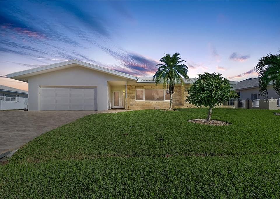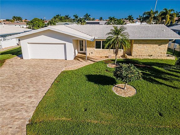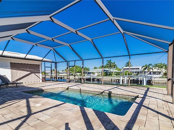 Opportunity awaits at this INCREDIBLE GULF ACCESS, SAILBOAT, SALTWATER CANAL, POOL HOME with 85 feet of seawall, DOCK & BOAT LIFT. MINUTES TO OPEN WATER! From the outside enjoy a well maintained property including a beautiful BRICK PAVER DRIVEWAY and low maintenance TILE ROOF. YARD IS FENCED FOR YOUR PETS! Interior updates include updated electrical, overhead PEX plumbing, newer air handler, FRONT IMPACT WINDOWS & IMPACT FRONT DOOR. HURRICANE SHUTTERS FOR OTHER WINDOWS/DOORS. From the entry, find a separate living room and dining area overlooking the pool and water beyond. Off to the left, your first master suite with private access to the lanai through sliding doors, walk in closets, updated bathroom with large walk in tile shower. On the opposite side of the home, the kitchen is at the heart of the home featuring real wood modern cabinetry and a view of the lanai and waterway. SECOND MASTER SUITE on the opposite side of the home with updates including porcelain tile plus another additional, third bedroom which can double as a HOME OFFICE. On the lanai, the pool and cage are a dream, with plenty of space to entertain! City maintained concrete seawall in place. Park your boat at your concrete dock and motor out in this sailboat access property, ABOUT 2 MINUTES TO OPEN WATER! CLEAN & MOVE IN READY! Schedule your showing as properties like this do not last long!