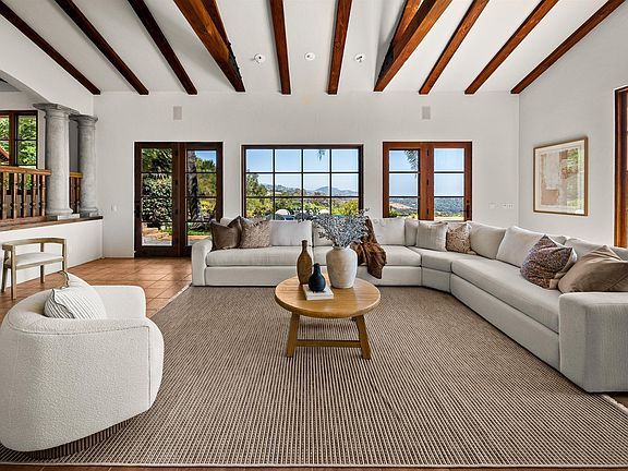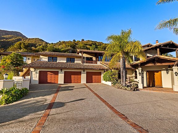One of the property's distinctive features is its six-car garage, offering ample space for car collectors. Outdoors, the property is a true retreat. A resort-style pool, expansive view decks, outdoor BBQ area, and koi pond create the ultimate setting for relaxation or entertaining. The estate's elevated position ensures unparalleled privacy, offering a serene escape while still being minutes from the heart of Montecito.