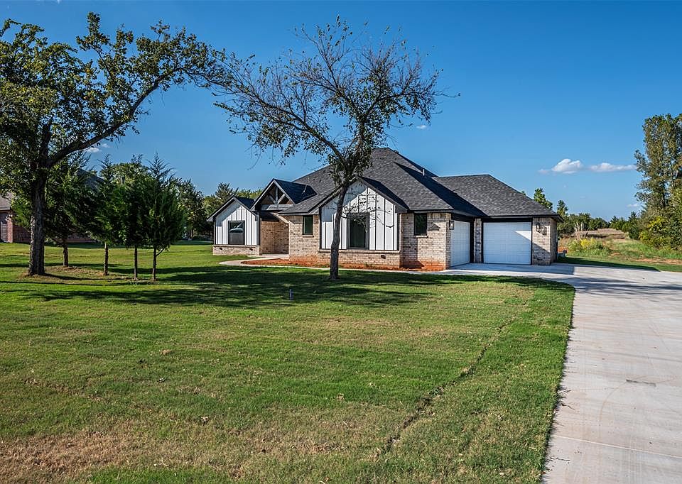 This Beautiful country house has three spacious bedrooms, Study, two and a half bathrooms, and a three-car garage. Nestled by a serene pond, lots of natural light, creating an inviting and tranquil ambiance. This gorgeous home has an open floor plan and features a vaulted ceiling in the living room. The primary suite features a large walk-in closet, double vanities tub and shower. Conveniently located near the turnpike for easy access to Mustang or Norman.