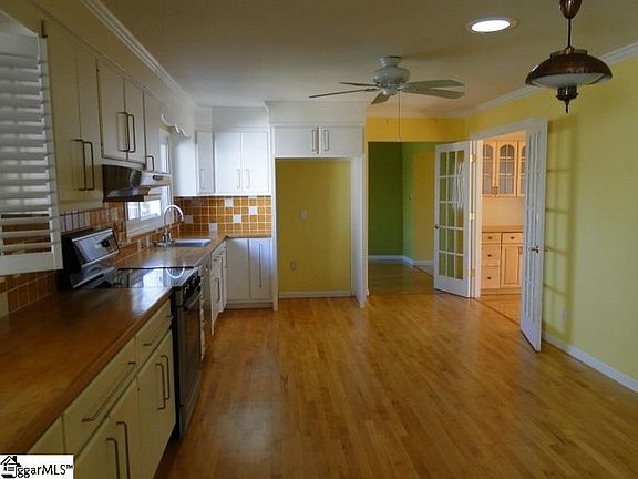 Wonderful one owner home sitting on 2.76 acres conveniently located between Greenville and Spartanburg. Split floor plan with 4 bedrooms, 3 baths, sun room, keeping room, dining, den and large kitchen! Guest house with 750 sq ft. Hardwood floors throughout home except baths with Italian tile. Enter home into large foyer with French doors opening up to formal dining with butlers pantry and wet bar. Dining Room leads into large kitchen with a gracious amount of custom cabinets, custom counter tops and spacious breakfast area. Kitchen window overlooks large, beautiful backyard that leads to creek. Den with wood stove and built in IKEA cabinets opens to Florida room with an abundance of windows allowing natural lighting and beauiful view of backyard. Keeping room off of kitchen could easily be office, play room, music room, reading room or anything you can imagine. Home has wonderful flow for entertaining. Huge walk-in laundry room with laundry sink. Three secondary bedrooms with large closets. Guest (4th) bedroom has private bath while large hall bath services other 2 bedrooms. Large private master on other end of home provides privacy and split bedroom floorplan. Master closets outfitted by Closets by Design. Master bath features jetted tub and bidet. Home has solar tubes throughout allowing lovely natural light. All baths updated 10 years ago. A courtyard separates the main house from guest house. Guest house has 2 bedrooms, full kitchen, and den which would make a wonderful in-law suite, teenage suite or man cave. Many potential uses for the guest house such as small business or home gym and it is currently rented out. Guest house comes with all appliances including washer and dryer. Workshop and garage in basement of guest house. Lots of storage in main home, guest house and outside storage building. Owner's hobby is working in yard and it shows with the beautiful landscaping, green house, & terraces with a number of flowering trees which is listed separately in documents. Home has many more updates that are listed in documents. A well loved and well kept home sitting across from Greer Country Club offering 18 holes of golf and swimming.