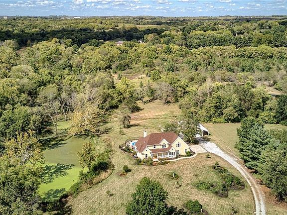 Country living yet minutes to all! Beautifully renovated home with just under 15 acres! This fantastic home offers completely renovated main floor w/refinished wood floors & interior paint throughout. Beautiful, all new kitchen with custom cabinetry, fixtures, lighting and quartz countertops with gorgeous farmhouse sink. Spacious dining area with built-in buffet and floating shelves. 2 pantries and 2 laundry rooms (main & lower levels). Primary suite offers fully renovated master bath with custom cabinetry, beautiful free standing tub, travertine tile floors, walk-in shower and walk-in closet! New LED lighting and fixtures. 2nd Floor features 3 additional bedrooms, fantastic library & large loft area and full bath. This level has new carpet and updated countertops, fixtures and vanity in full bathroom. New roof on main home & out building. Quality Hardie board siding, new front deck & railing along with a renovated 3 season room. Finished walk-out lower level is a complete second living quarters with full kitchen, bedroom & full bath and living area & radiant floor heating. 2nd laundry room/craft room and Dining area w/sep stairs to garage. Fantastic entertaining and relaxation space with Blue Paradise In ground pool with brand new heater. 6 person Elite Spa and outdoor fireplace. This private oasis offers stunning terraced landscaping with landscape lighting & drip line irrigation. 30 x 50 outbuilding on concrete slab w/water to building, New metal roof & gutters (2024), LED overhead lighting, New automatic garage doors on both ends. Numerous fruit trees in the orchard. Property has been surveyed and staked. Gorgeous landscaping features perennial garden beds w/irrigation, partially fenced pasture area perfect for horses, recently rehabbed and stocked pond! The property is adjacent 70 acre Marth Lafite Thompson Nature Sanctuary & fronts Rush Creek offers privacy & serenity close to all conveniences!