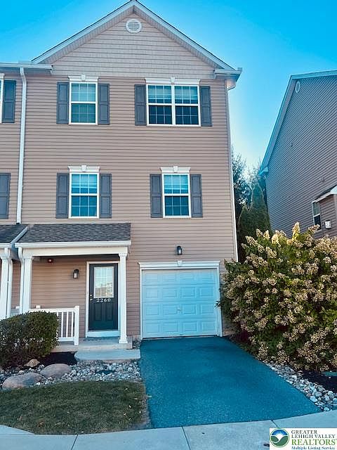 Stylish & Spacious 3-Level Townhome! This beautifully maintained 3-bedroom, 2-bath home offers the perfect blend of space, comfort, and convenience. The second level features a wide open layout with the living room, dining area, and kitchen flowing seamlessly together — ideal for entertaining or everyday living. Enjoy a cozy gas fireplace, stunning granite countertops, stainless steel appliances, and new laminate flooring. Soaring 9-foot ceilings and central air add to the bright, airy feel. Bedrooms and laundry are tucked away on 3rd floor for added privacy. Attached 1-car garage and basement offer added storage. Located Just minutes from Rt. 22, the Lehigh Valley Mall, shopping, and dining — this move-in ready home has it all. Don't wait schedule your appointment now. Be in before the Holidays !!!!!