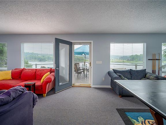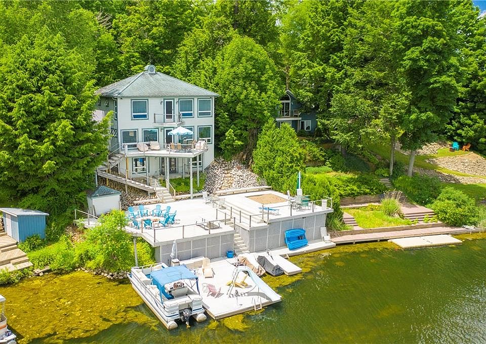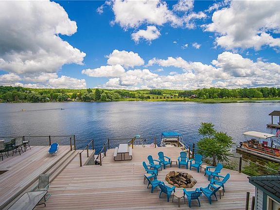 Live the lake life you have dreamed about! Custom home sitting on 62' Lake front with docks. This spacious Home boasts a panoramic water view the minute you walk through the door. Lots of kitchen cabinetry and built in dining table. A living and game room area is located just off the kitchen. Home has 4 bedrooms and 3 full baths. The lower Level is equipped with a bar, family room, bed and bath. A small building with loft used for storage, kids space, office, endless possibilities included.