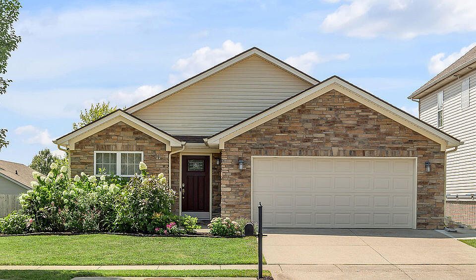 Coventry Community! Large ranch style home with over 1,800 square feet all on ONE level! You will be thrilled to discover many thoughtful upgrades - stunning quartz and tile backsplashes in kitchen and bath, shiplap design around fireplace, many new light & plumbing fixtures, stainless kitchen appliances, stylish LVP, and warm neutral paint throughout including professional cabinetry painting. This open floorplan provides 2 entertaining spaces - including impressive vaulted Great room as you enter and Family room at the rear of home overlooking patio - both w/natural sunlight & clean lines. Fireplace with shiplap accent anchors family room gathering area, along with providing access to fully fenced yard with beautiful landscaping. Kitchen features stunning a large amount of quartz countertops for preparation areas - in addition to extra beverage center. (Note: gas connector valve behind the smooth top range.) Primary bedroom provides generously sized private suite w/large walk-in closet with custom organization system and bath with double bowl vanity w/quartz countertop and tile backsplash. Rear patio may also be accessed from the primary suite (dedicated circuit for a hot tub available). Two additional neutral bedrooms also with newer carpet (upgraded pet proof carpet and upgraded pad) and terrific closet space. Separate Utility room, 2 car garage, pull-down stairs for attic access. This home will is truly move in ready, 1,800 square feet all on one level, 2 car garage, fully fenced and with so many features today's savvy buyers desire in their home! Fantastic location - within convenient proximity to downtown Lexington, Georgetown, New Circle Rd, interstate access and Lexington's first Publix (many options at new shopping center) and the neighborhood greenspace with playground.