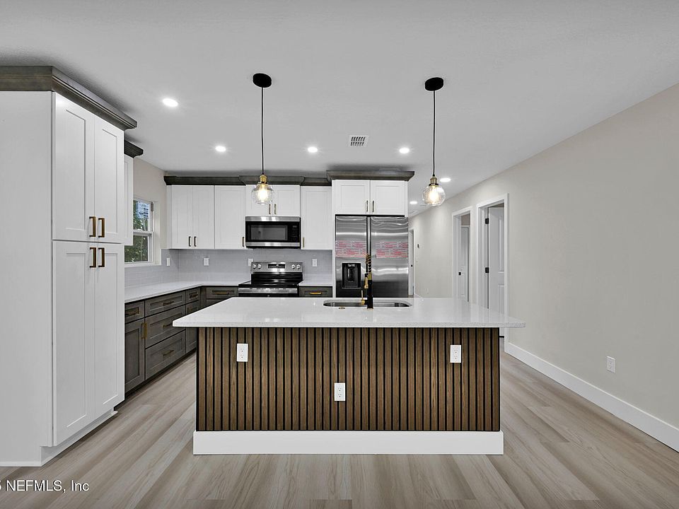 Here's the dream home you've been waiting for! This brand new build is a 4-bedroom, 2-bathroom residence blends style and comfort in every corner. Upon entering, you'll be greeted by beautiful wood LVP floors that lead you into a grand living area. The kitchen is a true standout with elegant wood cabinetry, stunning quartz countertops, and stainless steel appliances. The open layout seamlessly connects to the living room where natural lighting and warm fresh colored paint creates a homie atmosphere. The fully upgraded bathrooms exude luxury and elegance. The spacious master suite is a true retreat with a stunning vanity, and brand new cabinetry. The beautiful landscaped home has a pond right down the street that gives a peaceful and quiet serenity vibe. If this sounds like your perfect match, schedule your showing today!