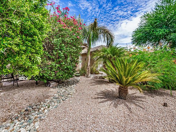 Lovely 4-bedroom home is now on the market! This beauty boasts an inviting curb appeal, a manicured landscape, and a 2-car garage. Inside, you'll find spacious living areas showcasing tile flooring, carpet in all the right places, abundant natural light, and an earthy palette, creating a comfortable ambiance throughout. The well-appointed kitchen awaits your home cooking, equipped with oak cabinetry, ample counter space, and built-in appliances. The serene main bedroom features a walk-in closet and an ensuite with double sinks and a separate shower & tub. The backyard is complete with a cozy covered patio ideal for morning coffee, a waterfall, mature desert landscaping, and plenty of space for outdoor fun. Don't miss it!