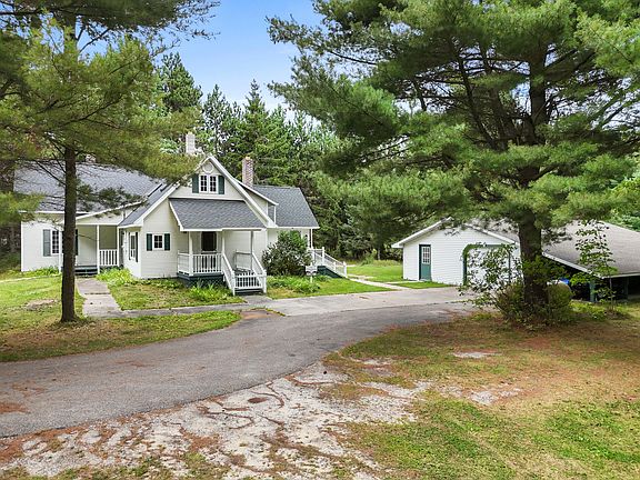 10 Acres in a peaceful setting near sparkling Higgins Lake. Three bedrooms 2 full baths. Quiet seclusion alive with wildlife. Craftsman quality throughout! Kitchen has wood cabinetry . Windows that flood the home with natural light. Open living room anchored by a wall of windows overlooking a deck. Rich hardwood floors paired tastefully with carpet, ceramic, and vinyl. 2 bedrooms on 2nd floor, master on main with stairway leading to a bonus room. Heating system has been updated with latest energy efficient boiler with hot water heater. Roof shingles on all buildings and windows updated recently. New well installed 2025. 28 x 40 garage has 2 masonry chimneys for wood heat, large heated work shop, 8 x 40 exterior shed roof. Location is perfect, close to Higgins Lake, Roscommon and schools